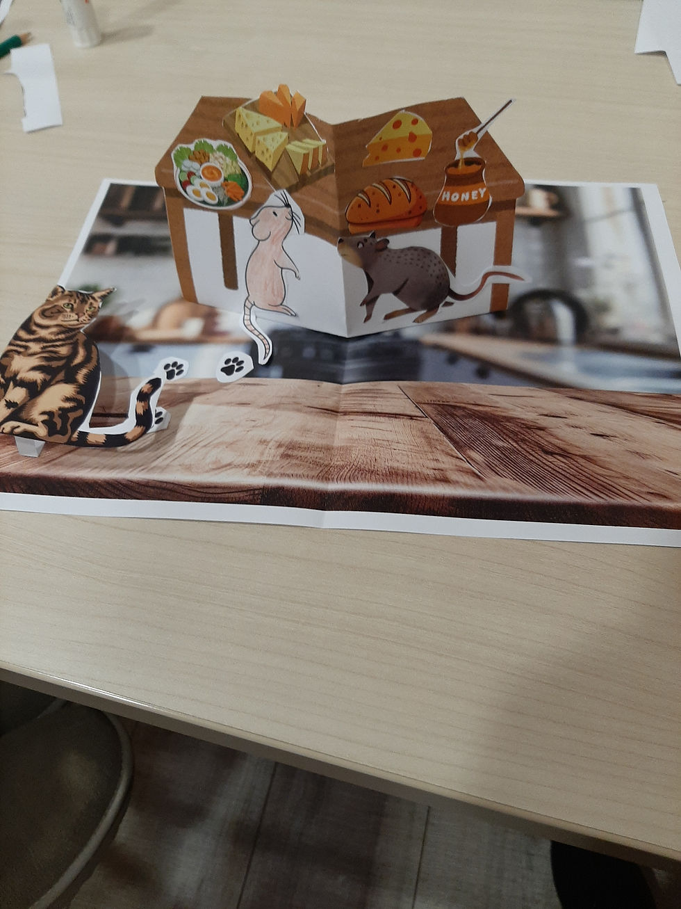 Coller aussi des éléments d'illustrations (comme un petit rat).